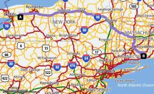 Saratoga to Darien Lake is about 259 miles almost due west which will have taken just over four hours by road.