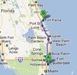 Hollywood, FL to Ft. Pierce, FL is 114 miles which will take about 2 hours by road.